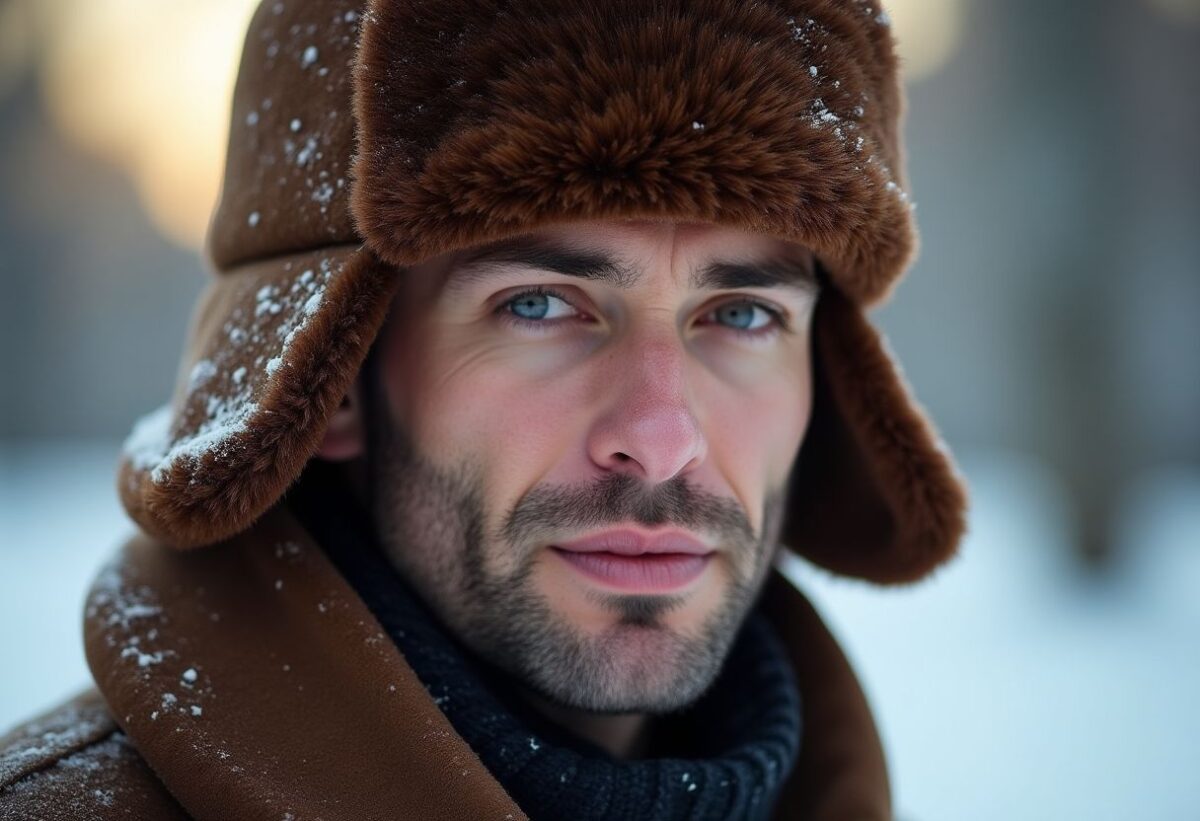 Un visage carré se caractérise par une mâchoire prononcée et des lignes angulaires fortes. Pour adoucir ces traits, une chapka bien choisie peut s’avérer très utile.